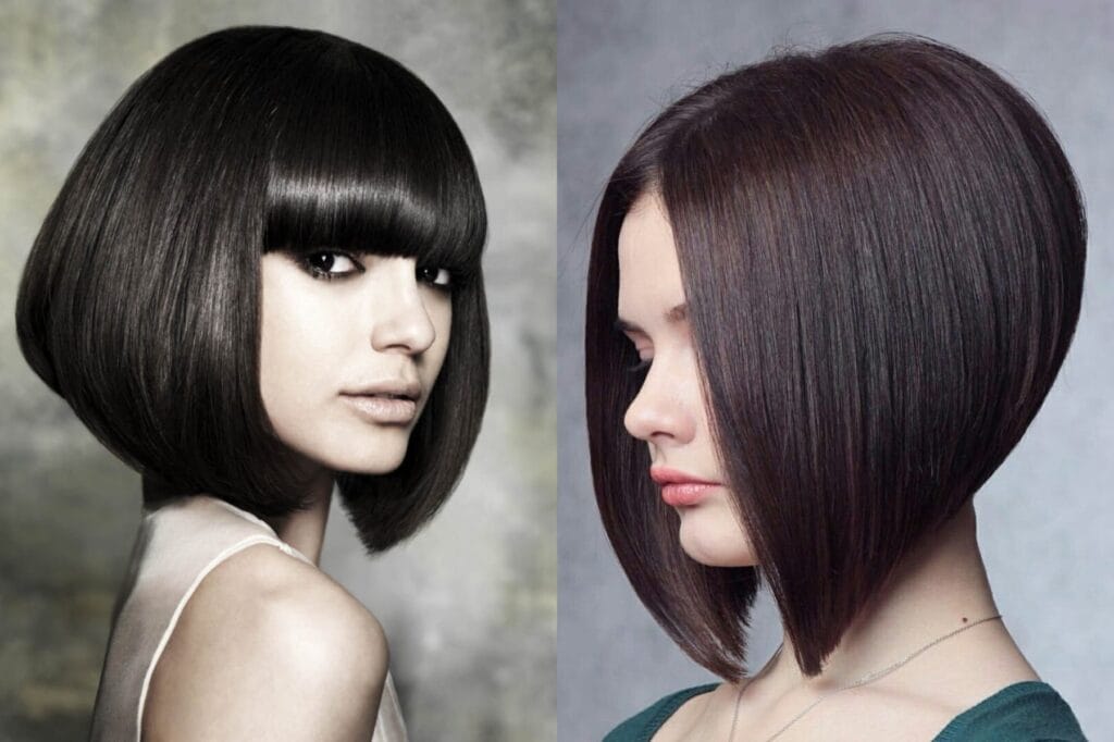 | Der abgewinkelte Bob | Dieser Schnitt ist kürzer im Rücken und länger in der Front. Er schafft Volumen im Rücken und gibt dem Gesicht eine schöne Form. |